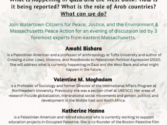 What is happening in Gaza and the West Bank? How is it being reported?What is the role of Arab countries? What can we do? Join Watertown Citizens for Peace, Justice, and the Environment &Massachusetts Peace Action […]
